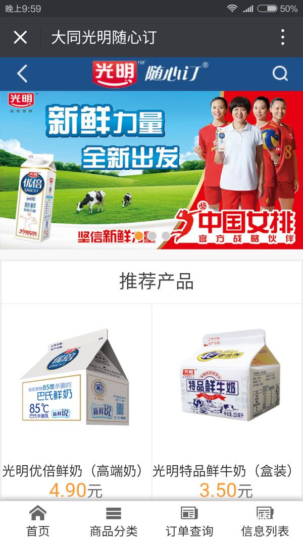 經(jīng)過緊張的開發(fā)和功能調(diào)試,近日,大同光明巴氏鮮奶隨心訂公眾平臺正式上線。