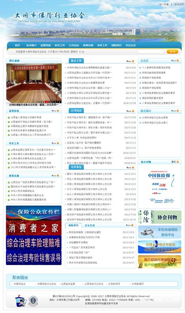 大同市保險行業(yè)協(xié)會網(wǎng)站2017改版升級完成