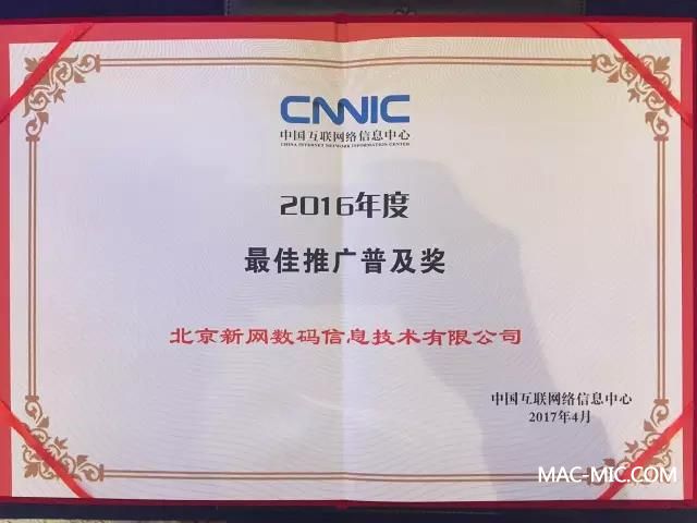 基于在域名領(lǐng)域的專業(yè)、專注,以及對中國互聯(lián)網(wǎng)基礎(chǔ)設(shè)施發(fā)展做出的持續(xù)貢獻(xiàn),我們還榮獲了CNNIC年度最佳推廣普及獎。