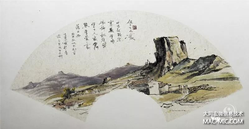 堡下人家 國(guó)畫(huà)寫意 扇面