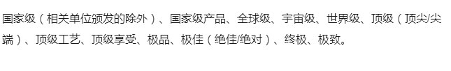 近日,陸續(xù)收到部分企業(yè)、單位因為網(wǎng)站、微信公眾號、畫冊、廣告牌等因違規(guī)使用極限用語收到工商罰單的報料,新一輪的極限用語為主的查處或早已走進各個行業(yè)。現(xiàn)將新廣告法禁止使用的極限用語匯總,有涉嫌違規(guī)的企業(yè)需盡快處理,避免受罰。