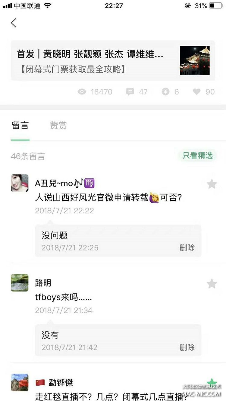 在獲得小編同意并授權(quán)后,當(dāng)晚11:30分左右,由新大同原創(chuàng)《首發(fā) | 黃曉明 張靚穎 張杰 譚維維 白百何...成龍電影周閉幕式最強(qiáng)陣容》在人說山西好風(fēng)光官微發(fā)送,將成龍電影周閉幕式消息分享給全國、全世界的粉絲。