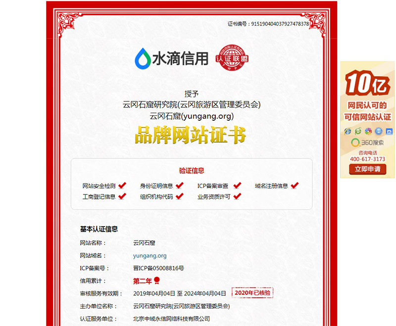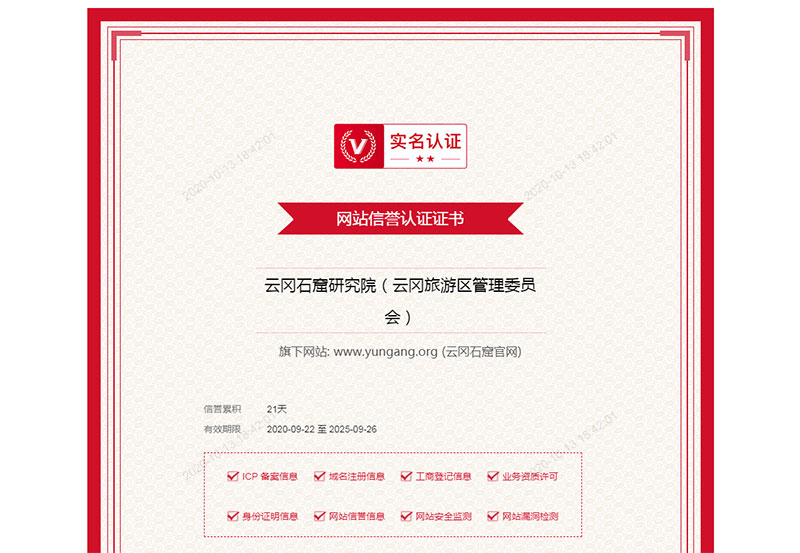 祝賀云岡石窟網(wǎng)站通過(guò)信用聯(lián)盟安全認(rèn)證檢測(cè)及官網(wǎng)標(biāo)識(shí)