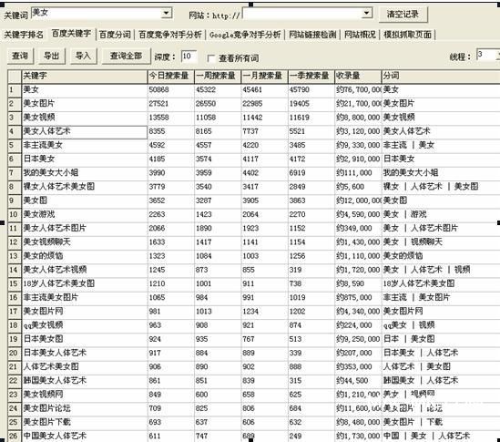 通過圖5大家可以看到,我通過這個工具輸入關鍵詞“美女”我就得到了和美女相關的一些熱門詞的百度指數情況。假設我要去做美女圖片站的SEO,就知道除了主關鍵詞“美女”還有哪些詞有比較大的搜索量,值得我去做SEO。