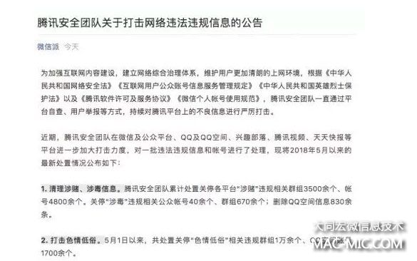 騰訊今日宣布關(guān)閉多平臺(tái)帳號(hào)累計(jì)4800余個(gè) 審查 移動(dòng)互聯(lián)網(wǎng) 微信 微新聞 第1張