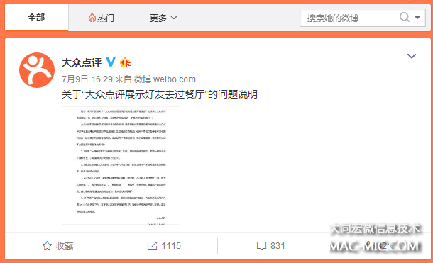 在7月9日的聲明中,大眾點評稱,大眾點評打造好友關(guān)系鏈類產(chǎn)品功能的初衷,是希望有分享意愿的用戶能夠通過大眾點評分享在生活中獲得的美好體驗,“但我們也發(fā)現(xiàn)這類功能設(shè)計在用戶體驗方面存在考慮不周的地方,這與我們的初衷背道而馳。”